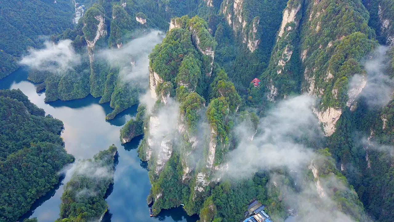 Cradled deep within Zhangjiajie’s emerald gorges, Baofeng Lake feels like a quiet celestial pool hidden from the world. Mist drifts across jade-colored water; peaks rise like ancient guardians; reflections ripple like brushstrokes from an unseen painter.