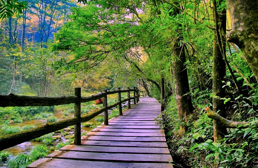 Walking along Golden Whip Stream is honestly the best way to experience this untouched forest. The trail winds gently between the mountains, and everywhere you look, there’s life—lush trees, fresh air, and the sound of the creek flowing beside you. It feels like walking through a living landscape painting.