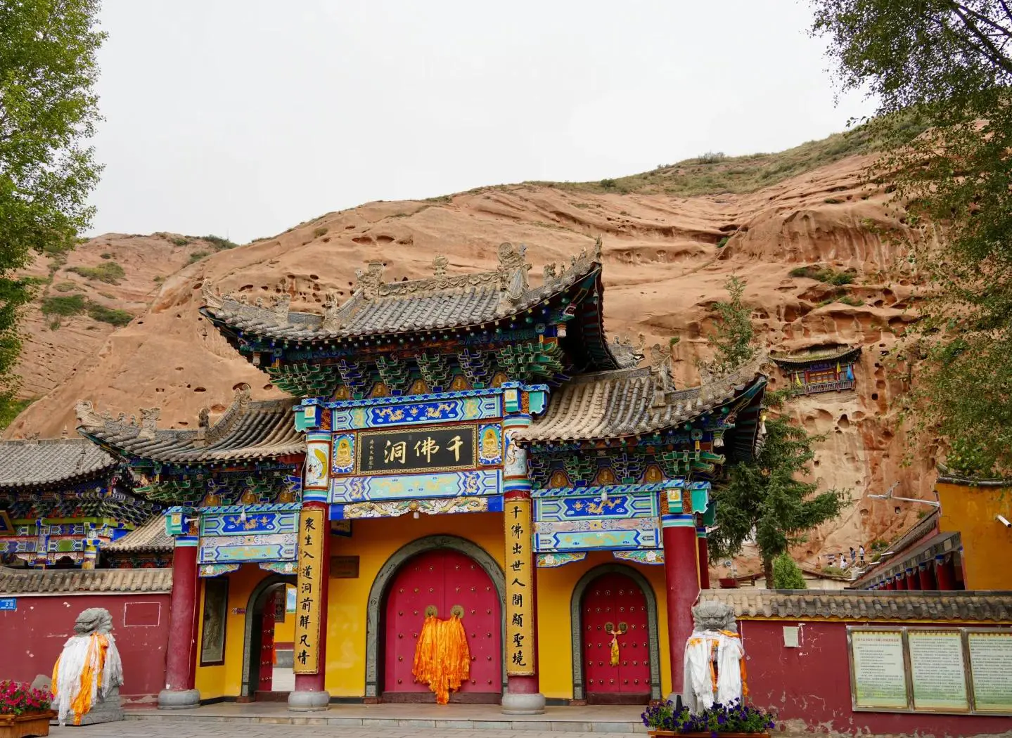 North Temple of Mati (also called Puguan Temple): Built into the red sandstone cliffs of Mati Mountain, the temple complex before the caves includes the Mati monastery and the Three-Buddha Hall. The cave-temple contains more than 30 niches of various sizes, such as the Thirty-Three Heavens Cave, the Tibetan Buddha Hall, and the Horse King Hall — all of high artistic value.
